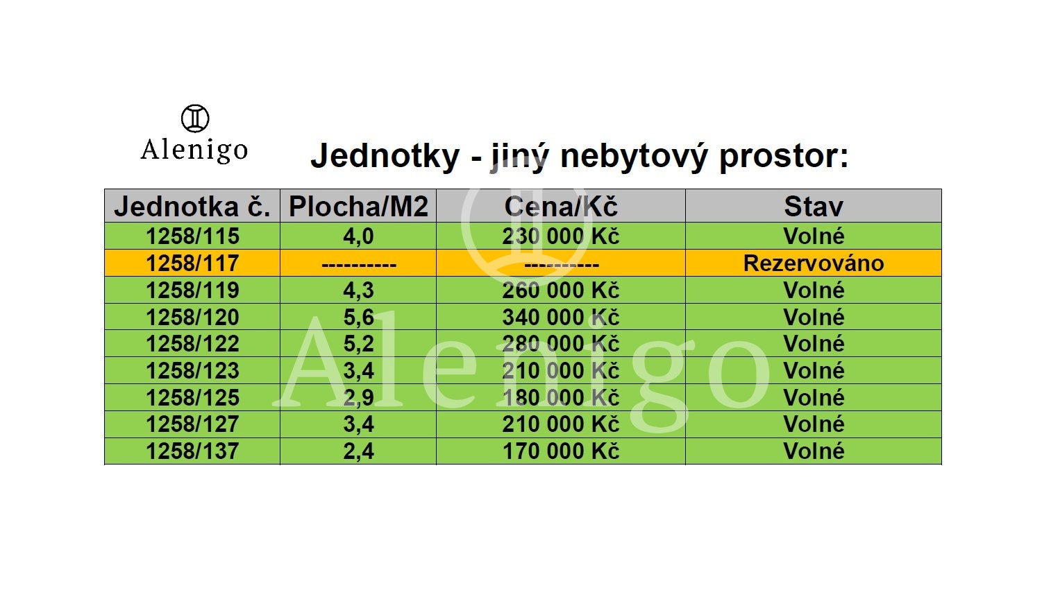 Ceník dalších jednotlivých nebytových prostor na foto v inzerátu.