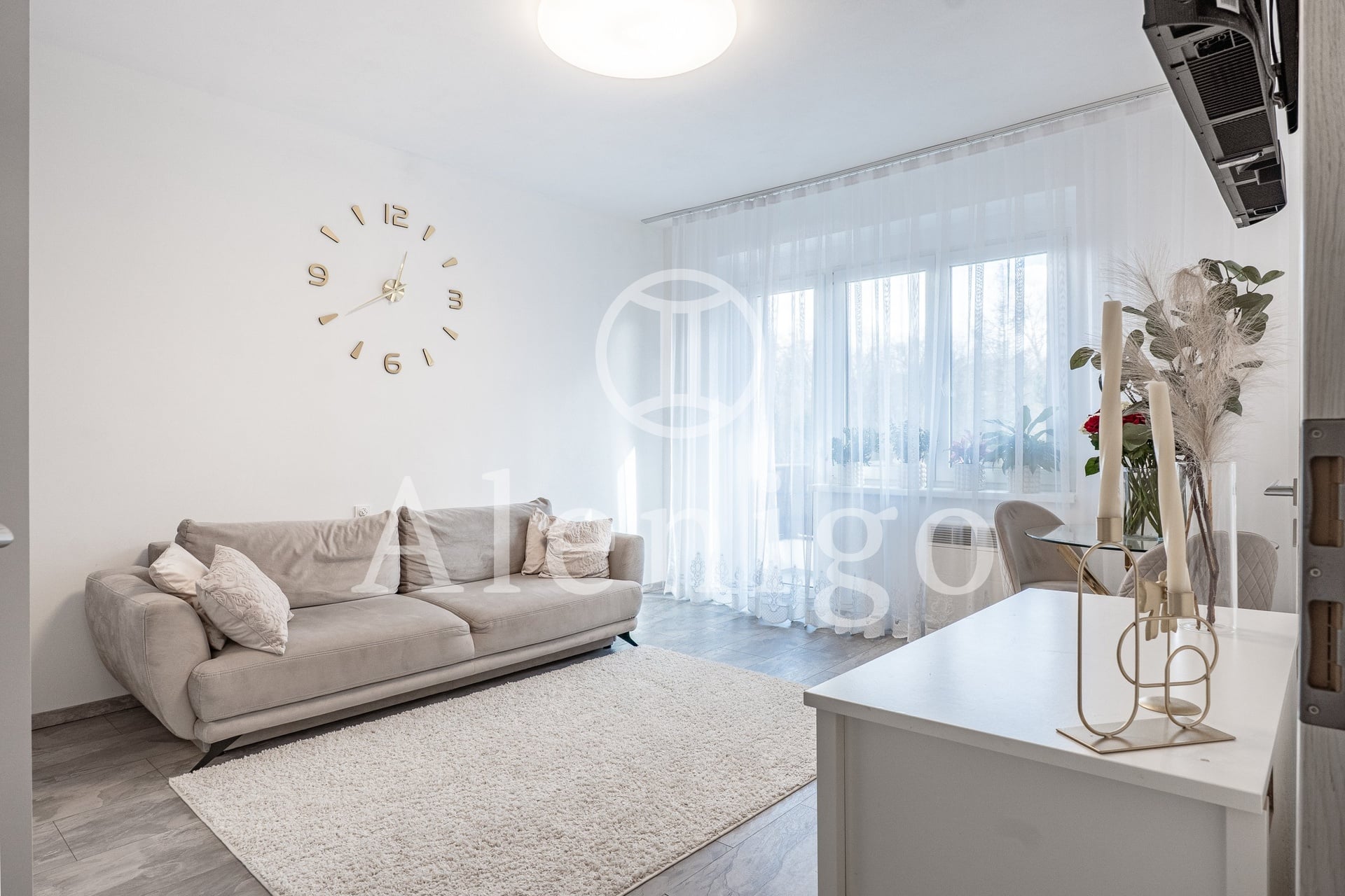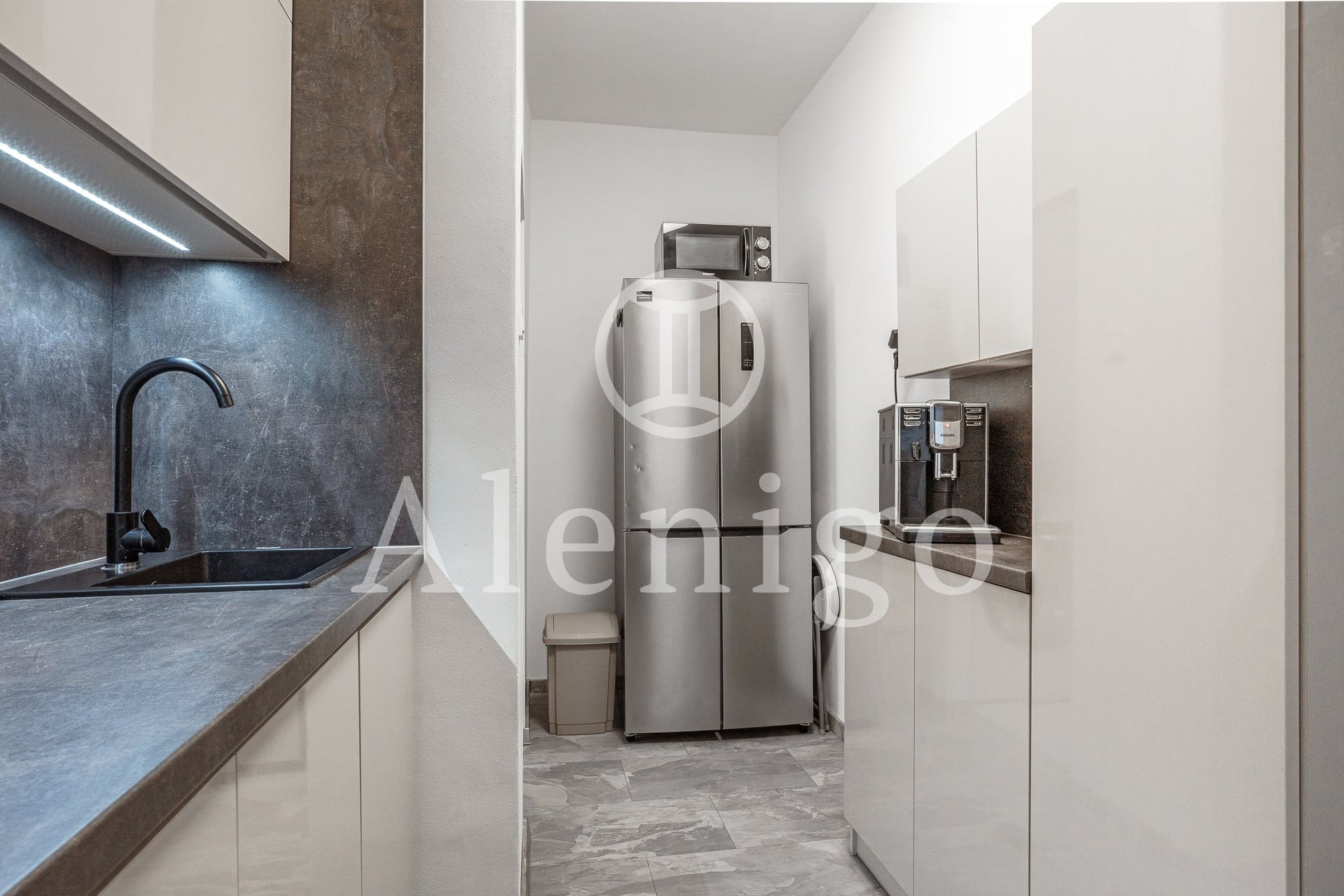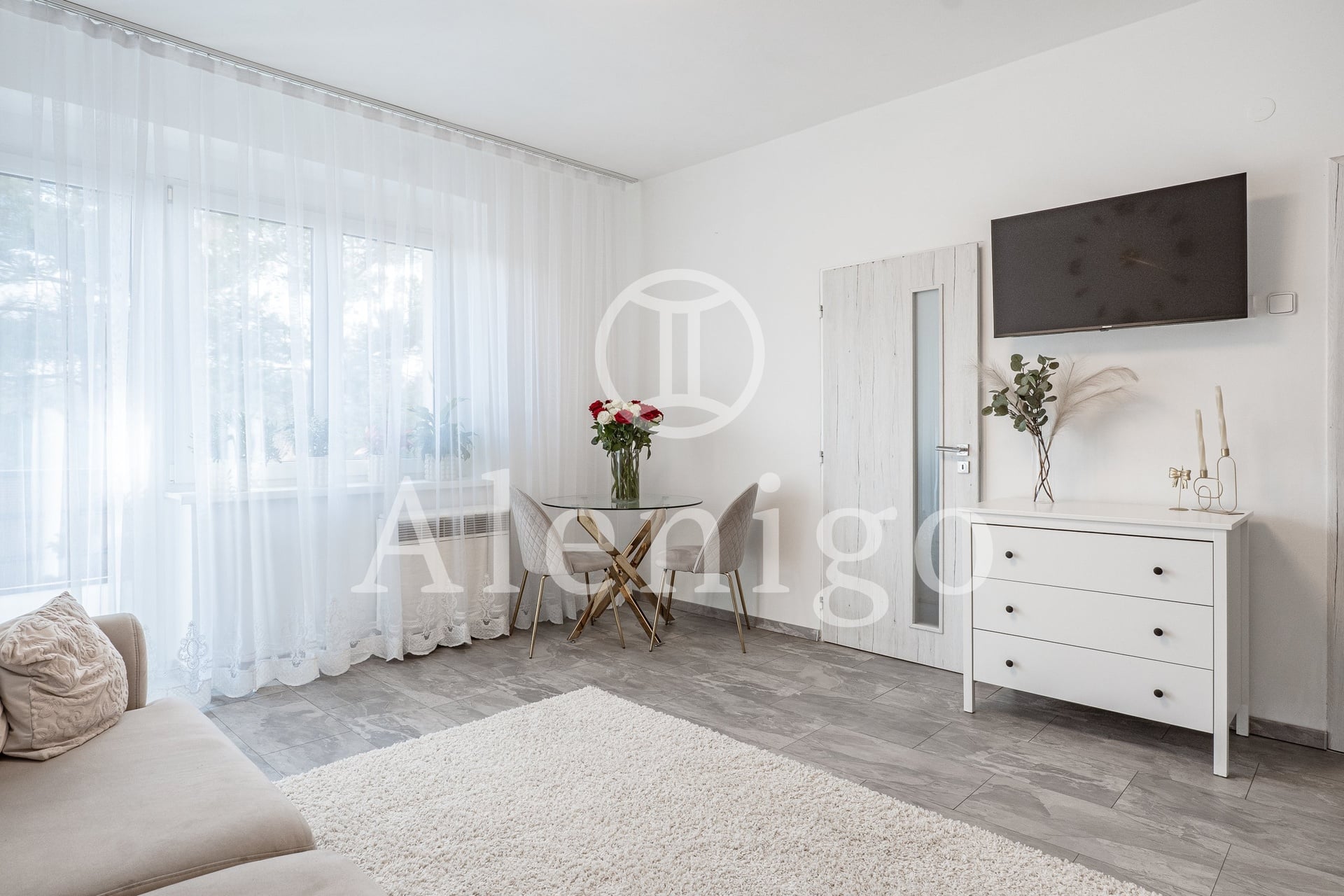 Dispozice: vstupní chodba s kuchyňskou linkou, obývací pokoj s přímým vstupem na balkon, koupelna se sprchovým koutem a WC. K bytu náleží sklepní kóje.
