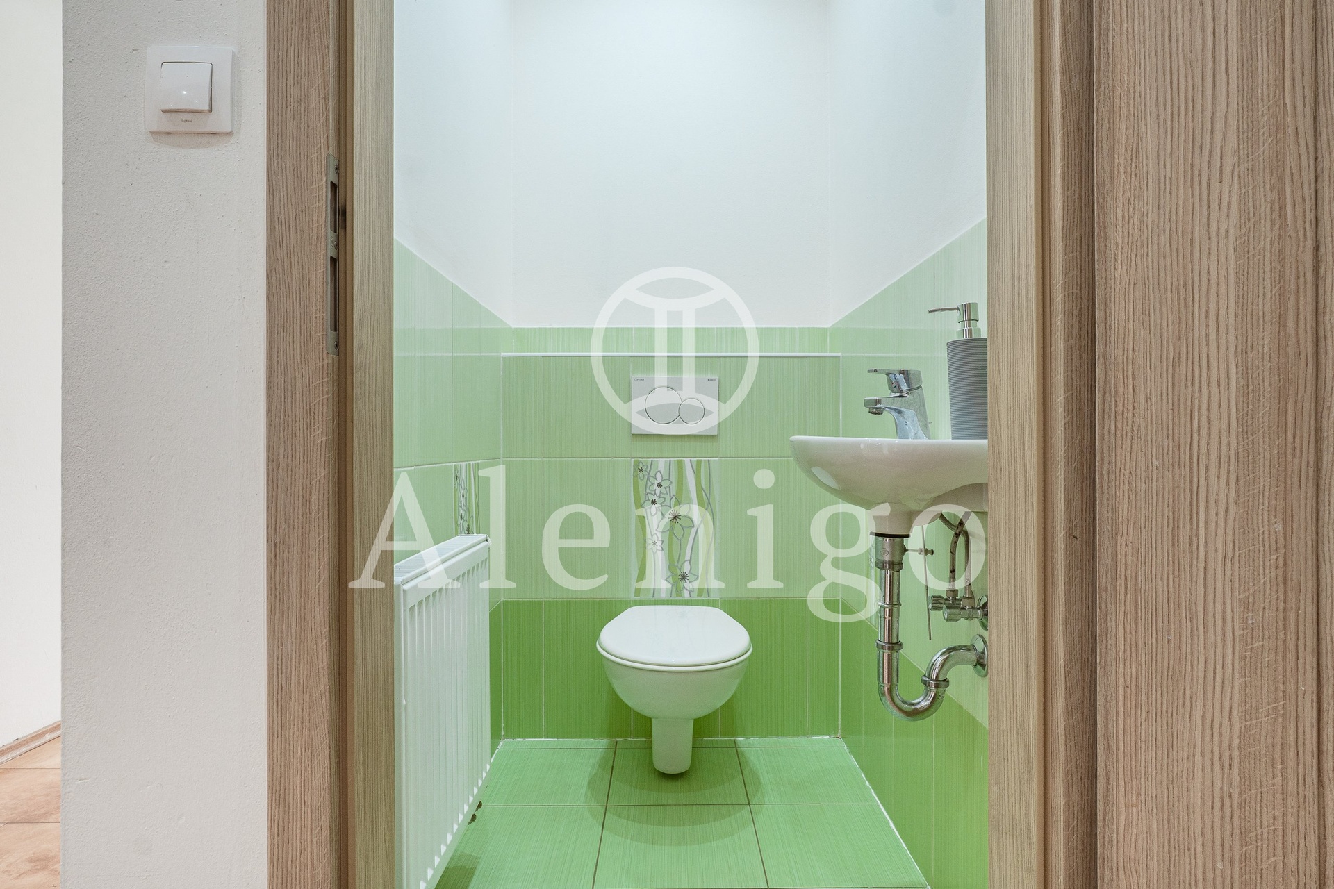 V přízemí se nachází obytná část domu, jeho hygienické zázemí a technické zázemí. Hlavní vstup do objektu ústí do chodby. Chodba tvoří hlavní komunikační uzel objektu. Jsou z ní přístupné všechny místnosti v přízemí. Obývací pokoj a kuchyň jsou vzájemně propojeny. Z obývacího pokoje je možné vstoupit přímo do zahrady . Přízemí je dispozičně rozděleno na chodbu, koupelnu , WC, 3x pokoj, kuchyňský kout a obývací pokoj. Všechny obytné místnosti jsou přímo odvětrány a osvětleny pomocí oken. Dům je vytápěn pomocí závěsného plynového kotle v provedení Turbo umístěného ve výklenku na chodbě.