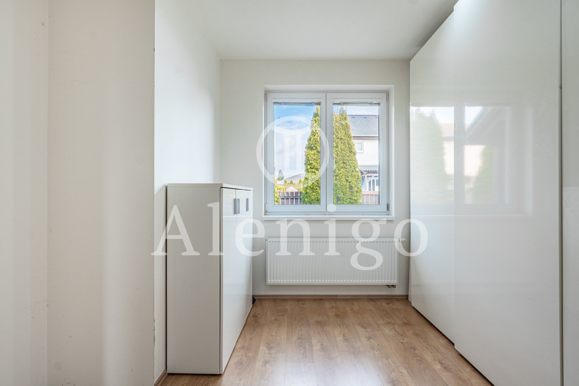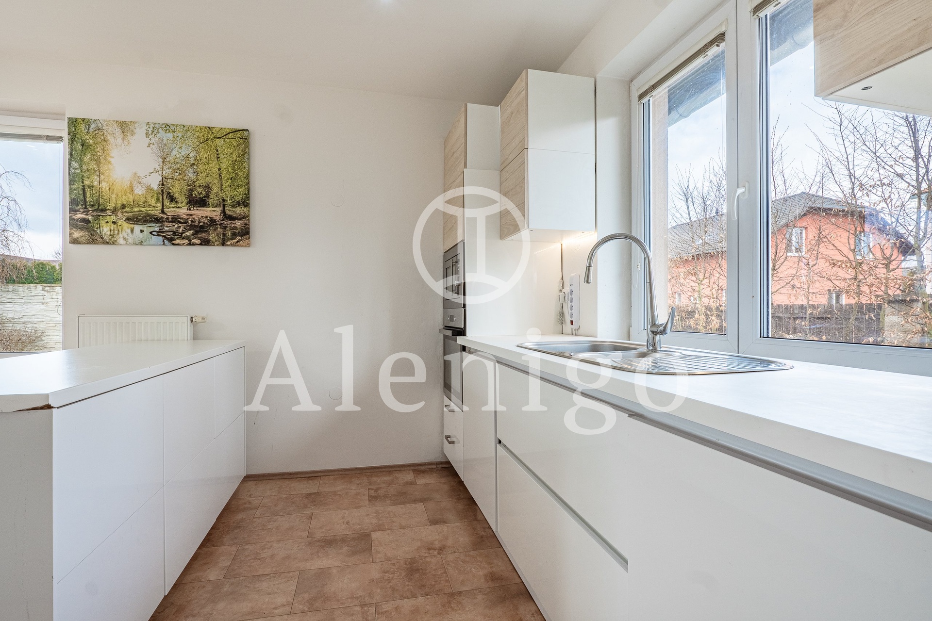Dům je přístupný samostatnou zpevněnou přístupovou cestou napojenou na veřejnou komunikaci. Pomocí francouzského okna z obývacího pokoje se nechá vstoupit přímo do zahrady .