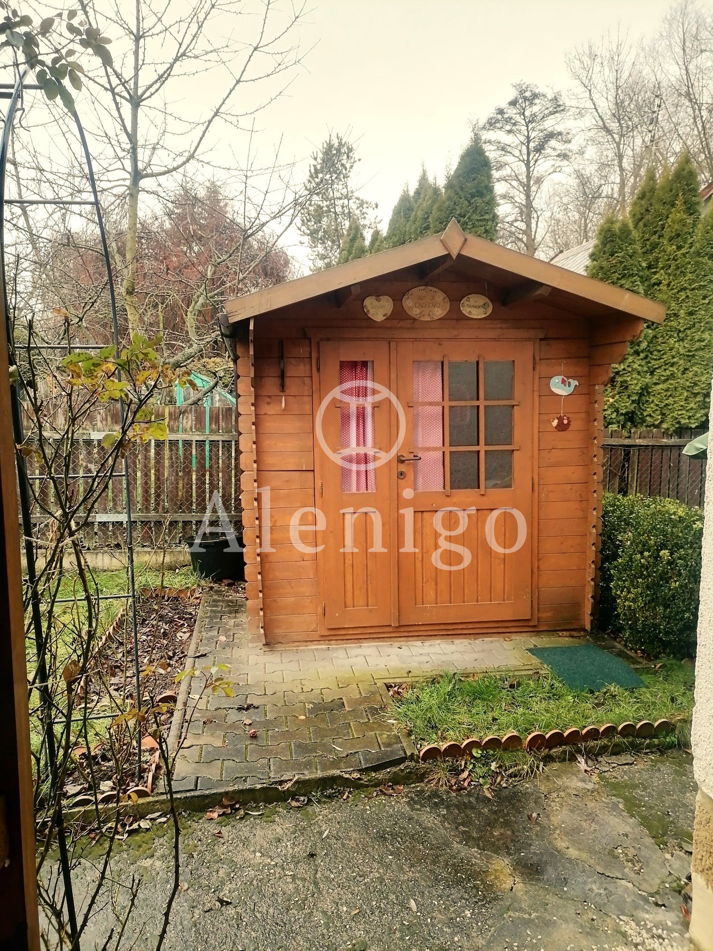 Chata stojí na vlastním pozemku a má přidělené číslo evidenční. K chatě náleží i zahrada, která je z menší části v osobním vlastnictví (celkem 88m²) a z části v majetku Římskokatolické farnosti Slaný (p.č.1474/14 o ploše 269 m²) - užívání této části je ošetřeno podnájemní smlouvu přes zahrádkářský svaz za symbolický roční poplatek. Nemovitost byla doposud využívaná a dobře udržovaná.