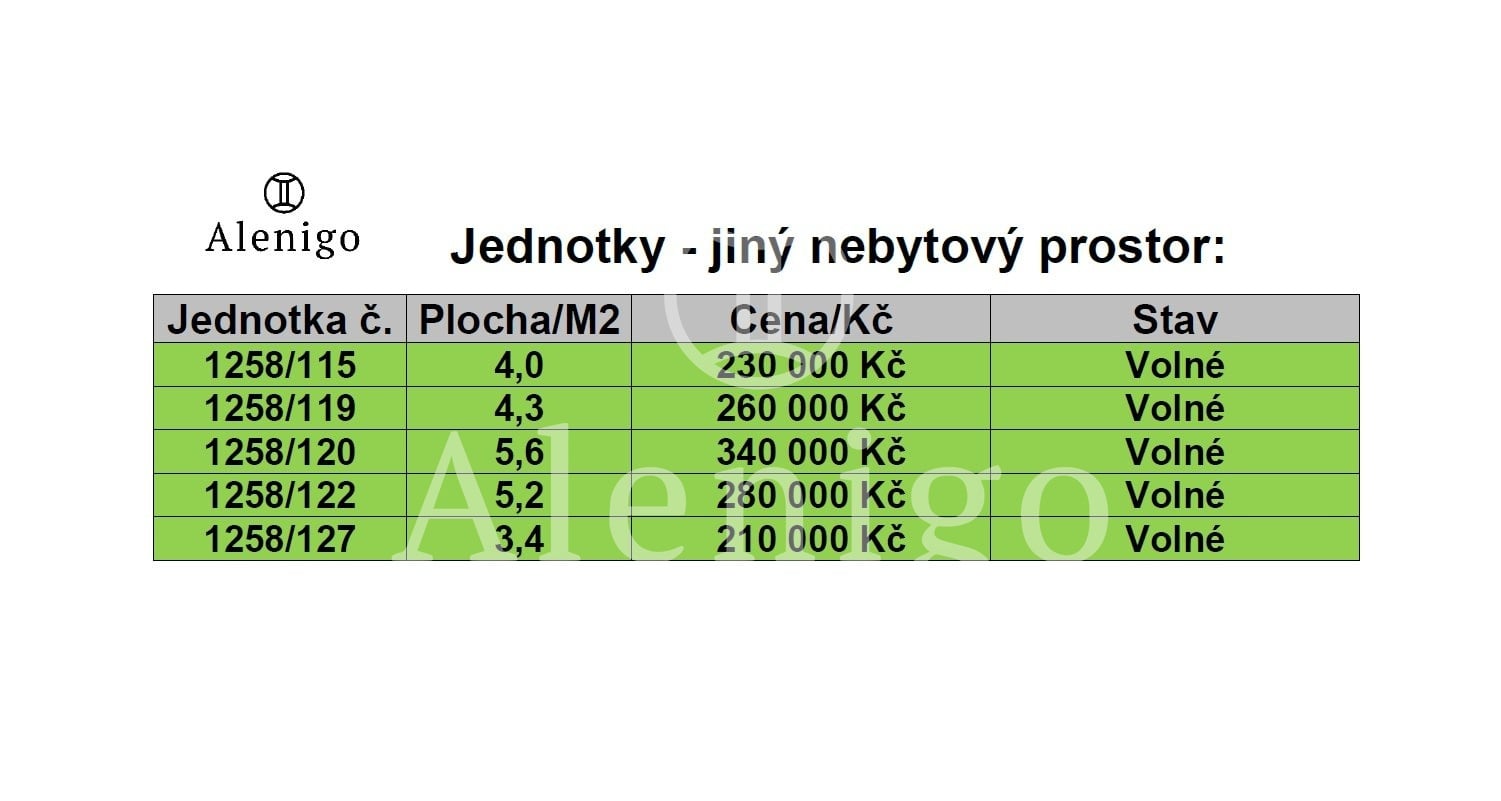 Ceník dalších jednotlivých nebytových prostor na foto v inzerátu.